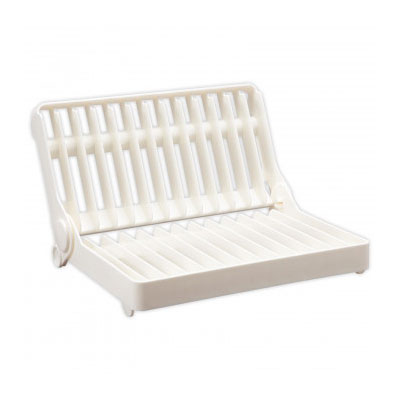 最大12枚のお皿が立てて収納できるディッシュスタンドです。平らにもなり、そのまま水切りラックとしても使えて便利。金属パーツがないのでサビる心配もなく、丸ごと水洗いできて衛生的に使えます。